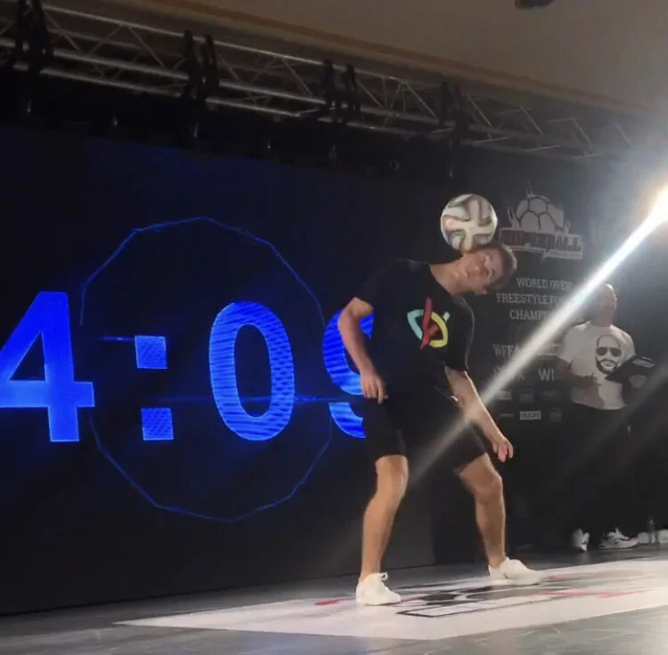 L'artiste suit le rythme de la musique tandis que le sportif réalise des figures physiques impressionnantes. Andrew henderson démontre des capacités impressionnantes au football, mais pas sur un terrain :