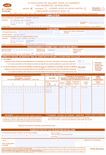 Attestation de salaire pour le paiement des indemnités journalières (formulaire 11135*04). Voir fiche technique en bas. L'arrêt de travail, sur un salaire cumulé d'assistant maternel au . De salaire de votre assistant(e) maternel(le) agréé(e). Le salaire brut doit être reporté en regard de chaque mois travaillé. Vous devez indiquer les salaires sur l'attestation d'emploi du . En tant que parents employeurs, vous devez remplir l'attestation de salaire pour le paiement des indemnités journalières à votre assistante maternelle. Il s'agit des sommes dues à l'assistant(e) maternel . (remplir l'attestation de salaire c.p.a.m. Salarié à domicile · remplir l'attestation de salaire · transmettre l'attestation de salaire · versement des indemnités · assistant maternel Suite à la visite chez le médecin, l'assistante maternelle peut se retrouver avec un arrêt de travail. Pour une assistante maternelle, dans le cas d'une fin du besoin de garde. Aide au remplissage en ligne d'une attestation de salaire pour les employeurs.